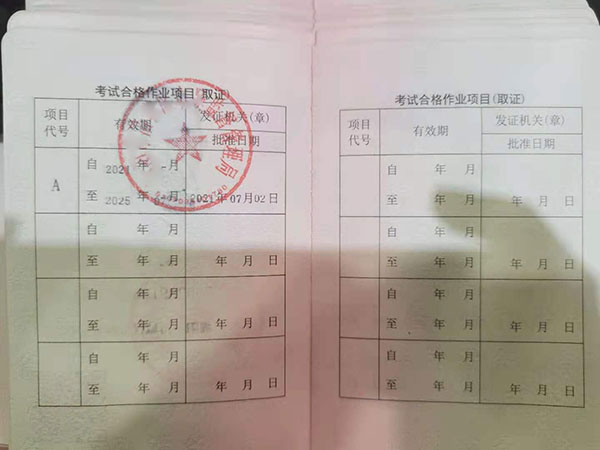 質(zhì)監(jiān)局特種作業(yè)證:鍋爐證G1,水處理G3,特種設(shè)備安全管理A,電梯維修T,快開門式壓力容器操作R1,移動式壓力容器充裝R2 ,起重司機(Q2橋式,門式,流動式),起重指揮Q1,叉車司機N1,觀光車司機N2, 等全工種