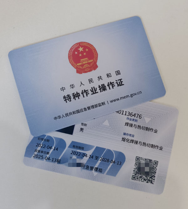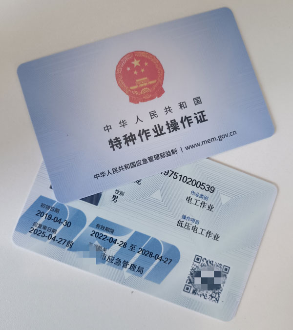 質(zhì)監(jiān)局特種設(shè)備人員作業(yè)證: